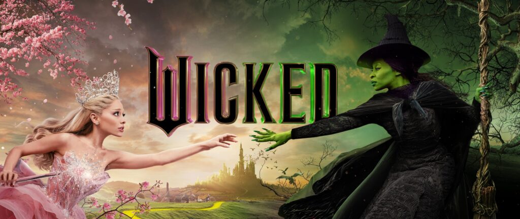 Sinopse: Baseado no musical homônimo da Broadway, Wicked é o prelúdio da famosa história de Dorothy e do Mágico de Oz, onde conhecemos a história não contada da Bruxa Boa (Ariana Grande) e da Bruxa Má do Oeste (Cynthia Erivo). As duas se conhecem na “faculdade de magia” e desenvolvem uma amizade inusitada e por fim uma rivalidade histórica.